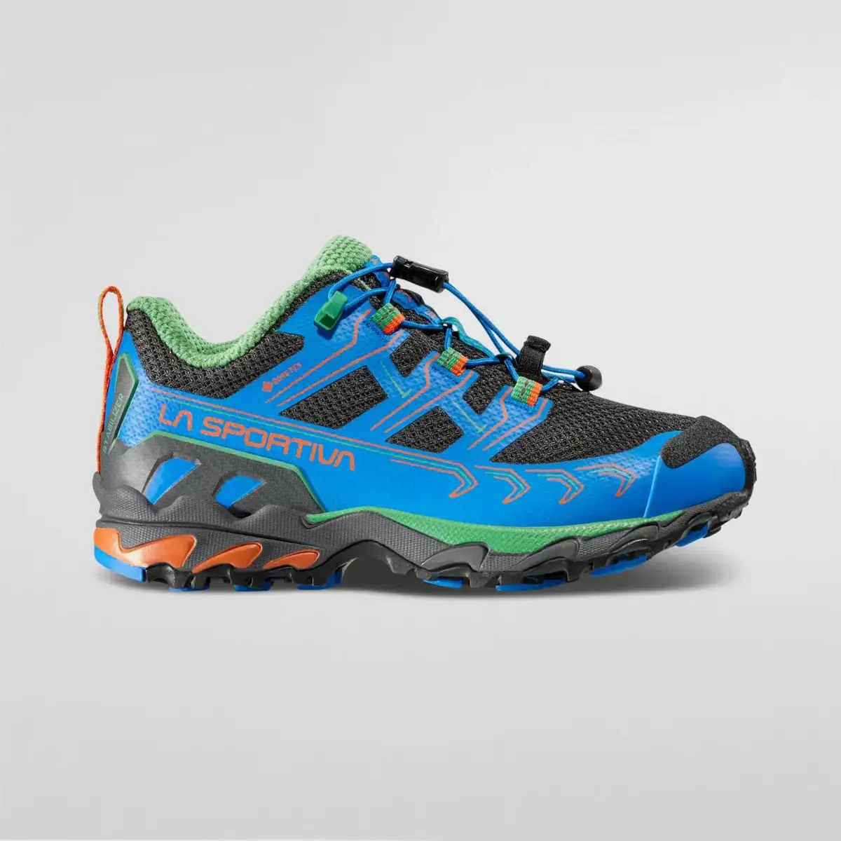 Ultra Raptor II Junior GTX is the waterproof and breathable GORE-TEXmembrane shoe dedicated to hiking and designed for the little ones. Perfect for everyday use and for running / walking on unpaved terrain. The upper is in breathable mesh with thermo-adhesive microfiber reinforcement and anti-abrasion edge for lightness and maximum impact protection. The Ortholite® Hybrid insole is made with recycled components from the manufacturing cycle and each material of the shoe is vegan friendly. The FriXion® Blu compound sole allows excellent grip and durability. Dedicated to our little Velociraptors.