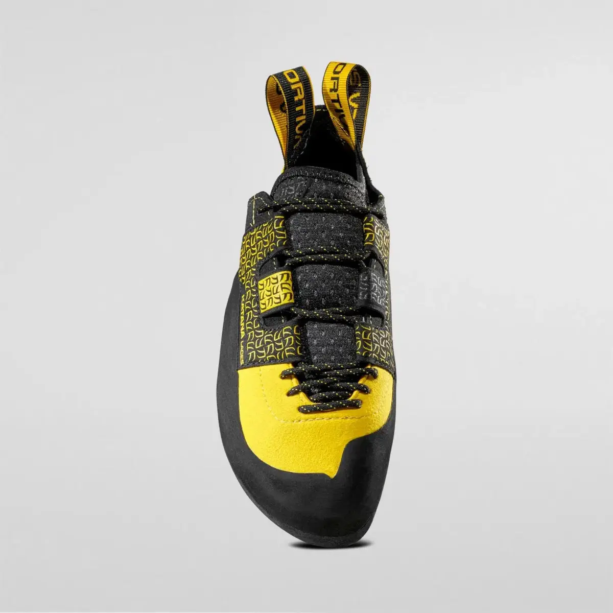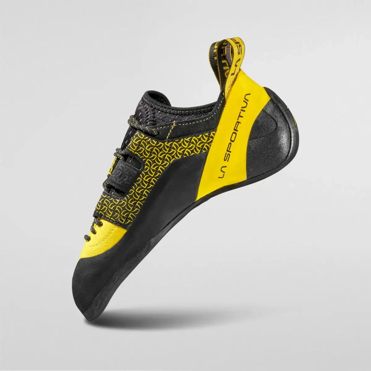 Technical and aesthetic evolution of Katana Laces: multifuctional, high performance climbing shoe. The tongue is made of a soft, breathable fabric, the lacing system, made of 100% recycled material, allows for optimal volume adjustment. The sole is in Vibram® XS Edge compound with high durability and grip that allows you to unload the maximum weight even on the smallest holds. This, combined with the P3 system, allows Katana Laces to keep their shape and characteristics unchanged even after many hours of use. The women version, in unisex colors, differs in the construction elements and is designed for climbers with reduced weight thanks to softer materials and reduced thicknesses capable of flexing more easily adapting to the roughness of the rock.