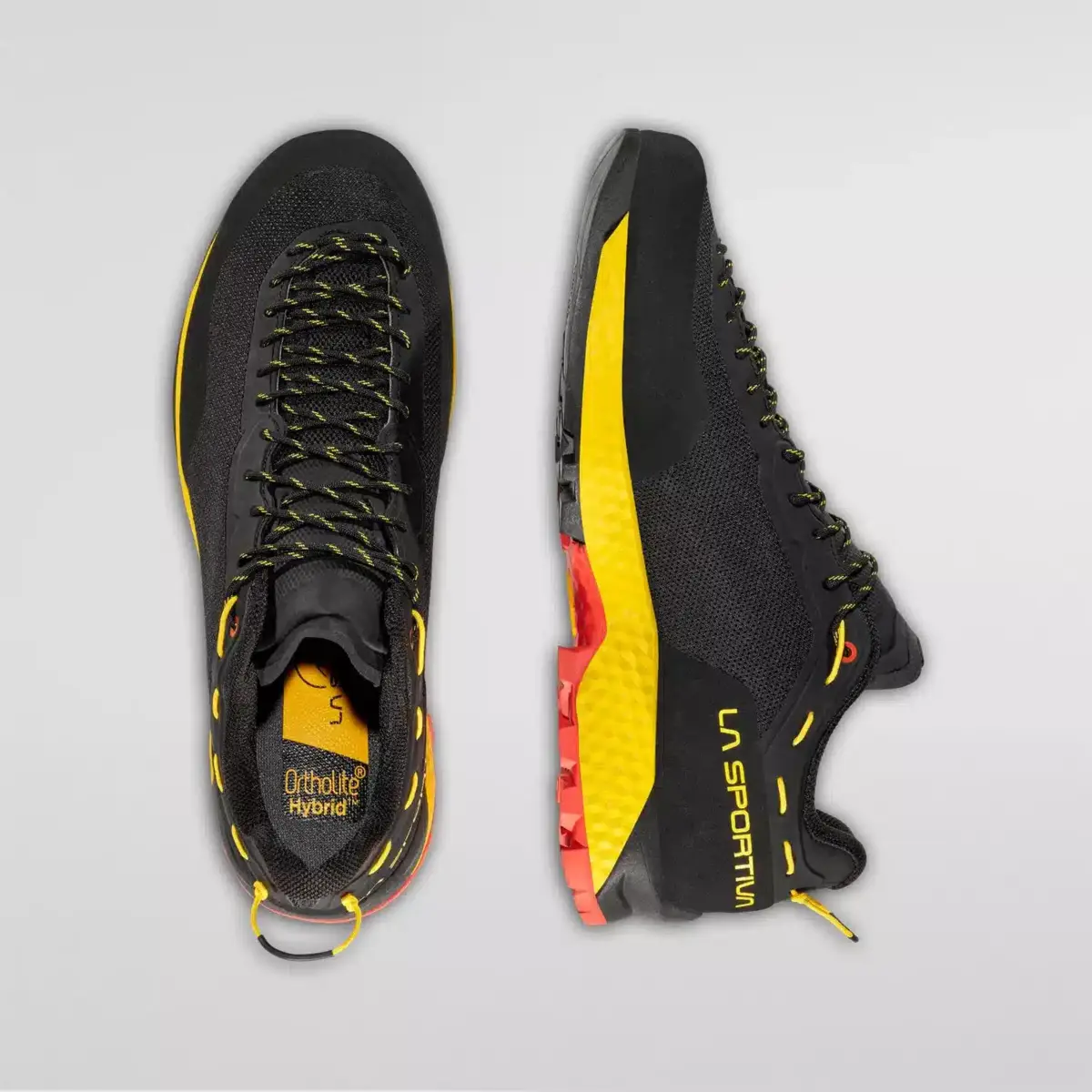 TX Guide is the most technical shoe in the La Sportiva TX Series. It is dedicated to technical approach routes and climbing and is designed for mountain guides and climbers looking for a long lasting, high performance product. Versatile, lightweight and protective, it is ideal for walk-run & climb approach routes as suggested by the aesthetics derived from a perfect combination of running/approach and the technical solutions inspired by the climbing world (sole, rand and lacing). The shoe has a dry and snug fit for maximum performance. It is very stable at the toe and allows to keep the edge in climbing. The highly abrasion resistant uppers are made from a single layer for optimization of internal volumes, with protective internal reinforcements in microfiber and external TPU reinforcements to guarantee abrasion resistance. The lacing is asymmetrical and approach-style up to the toe for maximum fit accuracy while the back part of the boot recalls the Mythos Style and allows for a perfect support at the heel. The protective Climbing-inspired rand uses PU-Tech Lite™. The construction of the tongue derives from the solutions applied to running shoes: the cuff prevents the entry of external elements during walking. The sole/midsole package uses shock absorbing, dual compressed EVA on the heel and a stabilizer on the forefoot: the front part of the midsole is co-printed with a TPU layer that acts as a climbing zone stabilizer, medial shank and rock-guard layer on the forefoot. The Vibram® MegaGrip and Idrogrip dual compound sole is the perfect combination of grip and durability while the pronounced heel facilitates downhill braking and provides greater uphill grip.