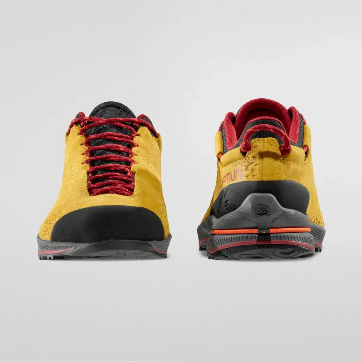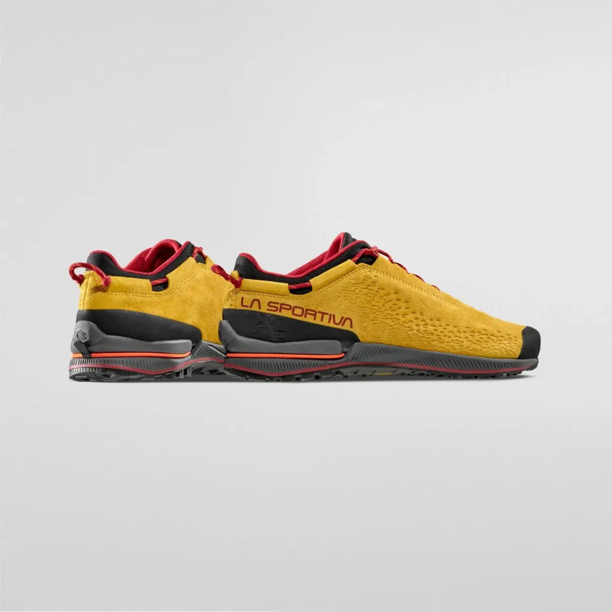 TX2 Evo Leather is the shoe designed for technical approach to climbing walls and for use on the crag, it comes with an enveloping fit and the incomparable comfort of the suede upper. It adopts a sole package with a 100% resolable tread that doubles its life cycle and uses recycled materials for a lower environmental impact. The sole package is designed for quick and easy resoling by replacing the tread exclusively at authorized La Sportiva resolers. Respect the environment thanks to the upper in metal free eco-tanning, the Ortholite® Hybrid insole in recycled material, the midsole made in part with processing scraps and the 100% recycled laces. Vibram® IdroGrip sole with climbing zone designed for maximum grip on technical terrain. TX2 Evo: renew, reuse, resole.