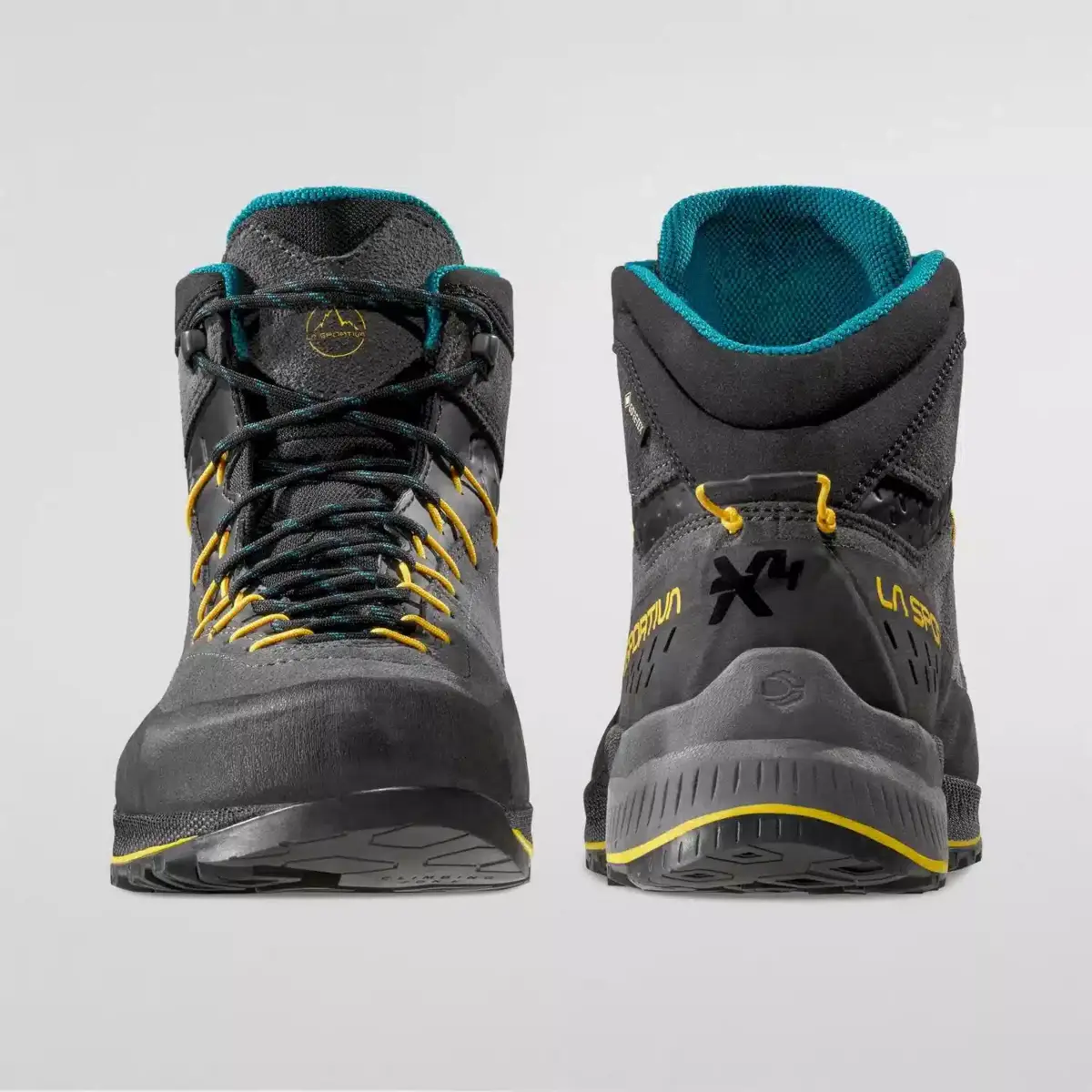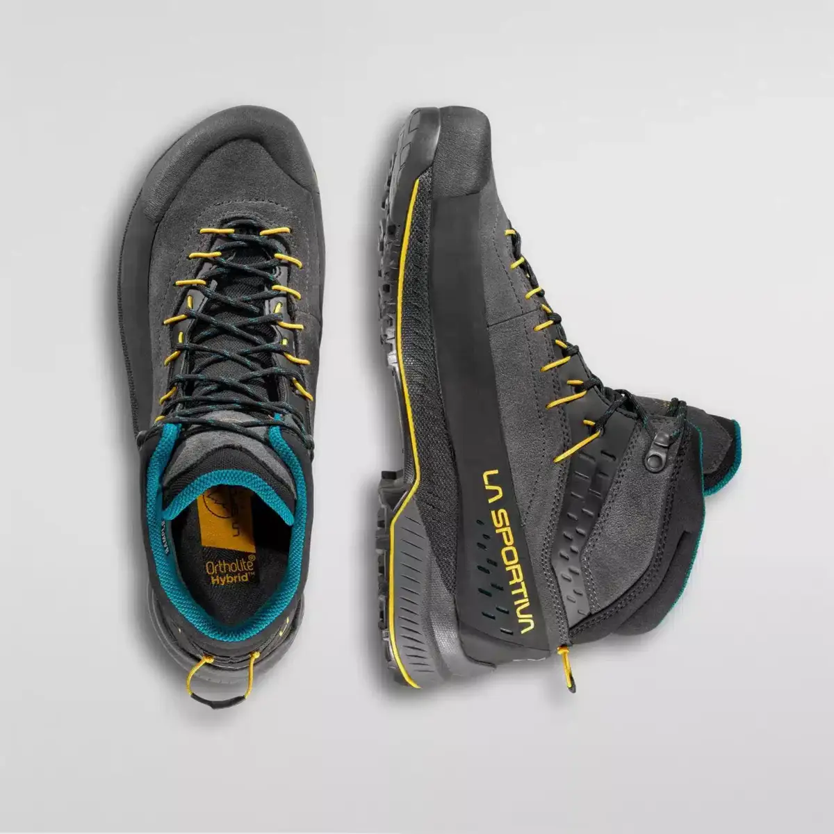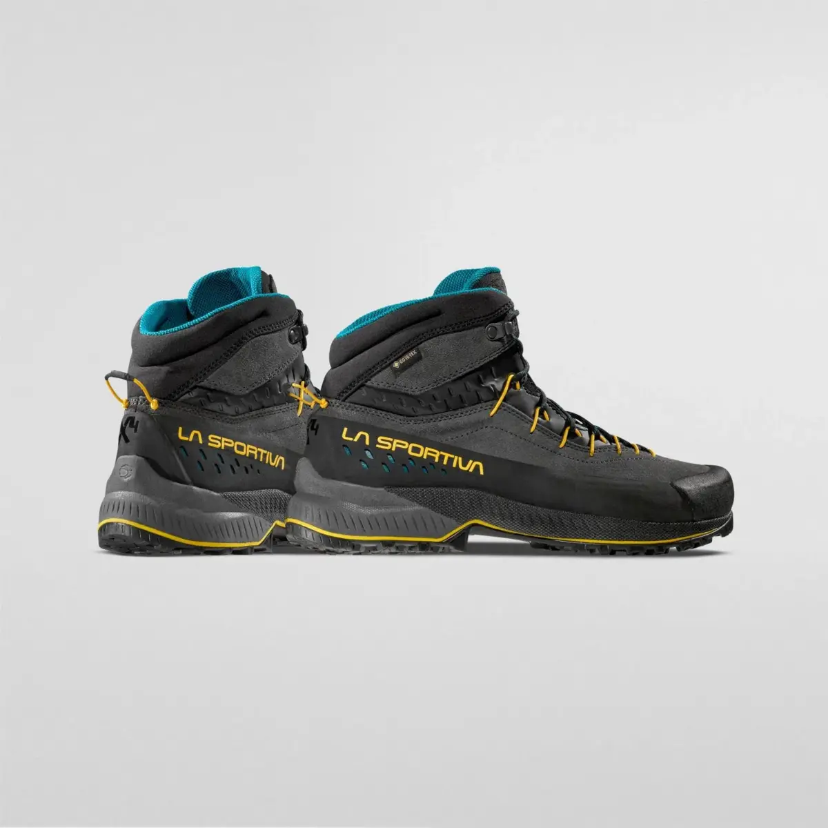 TX4 Evo Mid GTX is the mid-cut version of the iconic leather shoe, developed to guarantee maximum stability and grip even on the most rugged terrain.Ideal for technical approaches on all types of terrain, it offers unrivalled comfort thanks to the materials that make up the upper and the roomy interior construction. The GORE-TEX Extended Comfort membrane renders the footwear waterproof and breathable even during prolonged use.The tread featuring a Vibram® MegaGrip compound and patented Impact Brake System™ block structure ensures maximum stability when descending and perfect traction control when climbing. The generous Climbing Zone at the toe guarantees precision and excellent grip when climbing and during tricky sections.The special midsole featuring the patented Resole Platform™ insert allows the TX4 Evo Mid GTX to be resoled without compromising performance and comfort. Resoling your footwear means extending its life cycle and consequently reducing waste.
