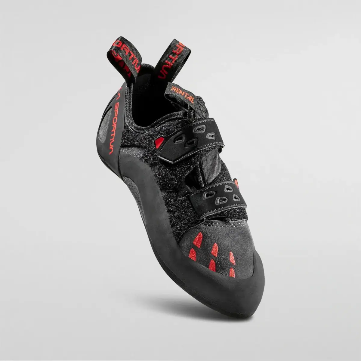 New edition for TaRENTula, a shoe dedicated to rental within indoor climbing structures. Fast and functional strap lacing, neutral shape suitable for all types of foot, equipped with clips for coupling to the shelf and external numbering for immediate recognition. Fast and functional lacing, neutral shape suitable for all types of foot. The extra thick FriXion® Black 5mm sole guarantees durability over time. The sweat absorbing tongue designed for prolonged indoor use is made of two overlapping parts: it facilitates the fit and avoids the formation of creases. The quick strap closure contributes to the structure of the liner. Ideal for the starting kit in the gym.