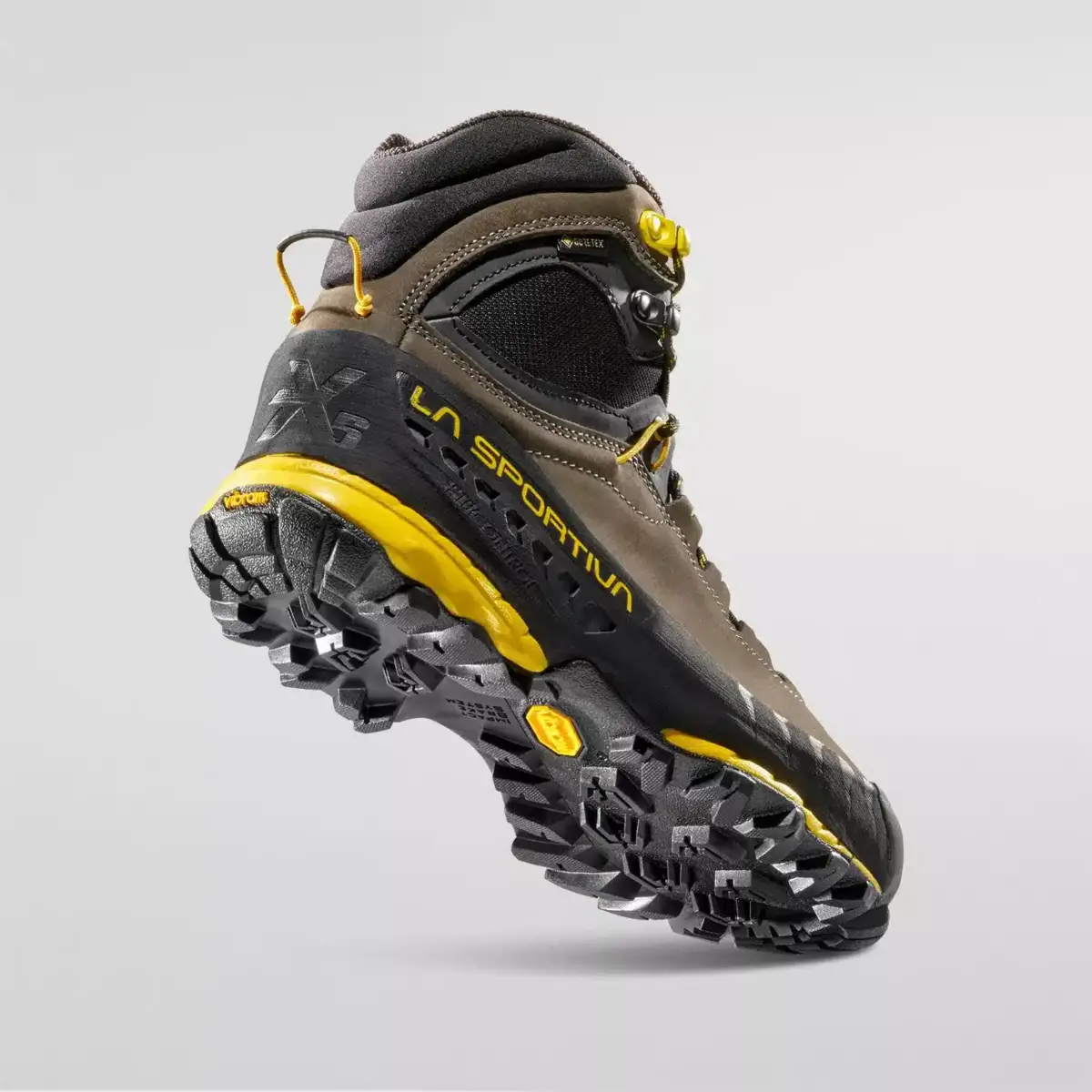 Mid-cut, approach shoe designed for hikers and backpackers with heavy loads. Secure and protective, TX5 GTX is waterproof and breathable thanks to the use of the GORE-TEX Extended Comfort membrane and extremely comfortable thanks to the soft Nubuck leather uppers enriched with the all-round protective rubber, abrasion resistant rand and toe cap. The high cuff protects against stones and mud while the 3D Flex System allows for maximum precision on holds and freedom of movement in complete safety, while the underfoot stabilizer makes the shoe ideal for extended use.The outsole uses Vibram MegaGrip compound with differentiated lugs and Impact Brake System for enhanced shock absorption and hold on all types of terrain. This shoe is the ideal choice for both hikers and general mountain enthusiasts.
