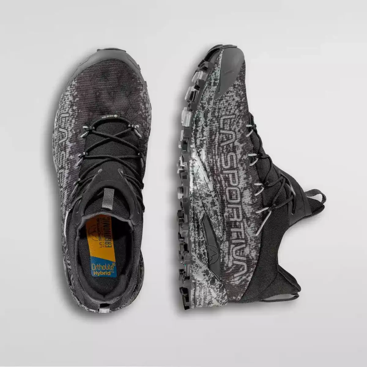 The sticky sole offers excellent grip on slippery surfaces and grip on scree or ice thanks to the deep lugs and compatible with AT-Grip Spikes. The Quick-Lace system with lace pockets and the Sock-Shield construction with integrated gaiter embrace the foot and eliminate empty spaces within the shoe. It also prevents stones, mud and snow from entering the boot. The lacing system is integrated with the structure of the uppers: This solution allows for regulation of volumes and keeps the foot in check on traverse routes. The seamless construction and the super flex membrane in waterproof and breathable GORE-TEX make Tempesta the perfect choice for athletes who train during the winter months.