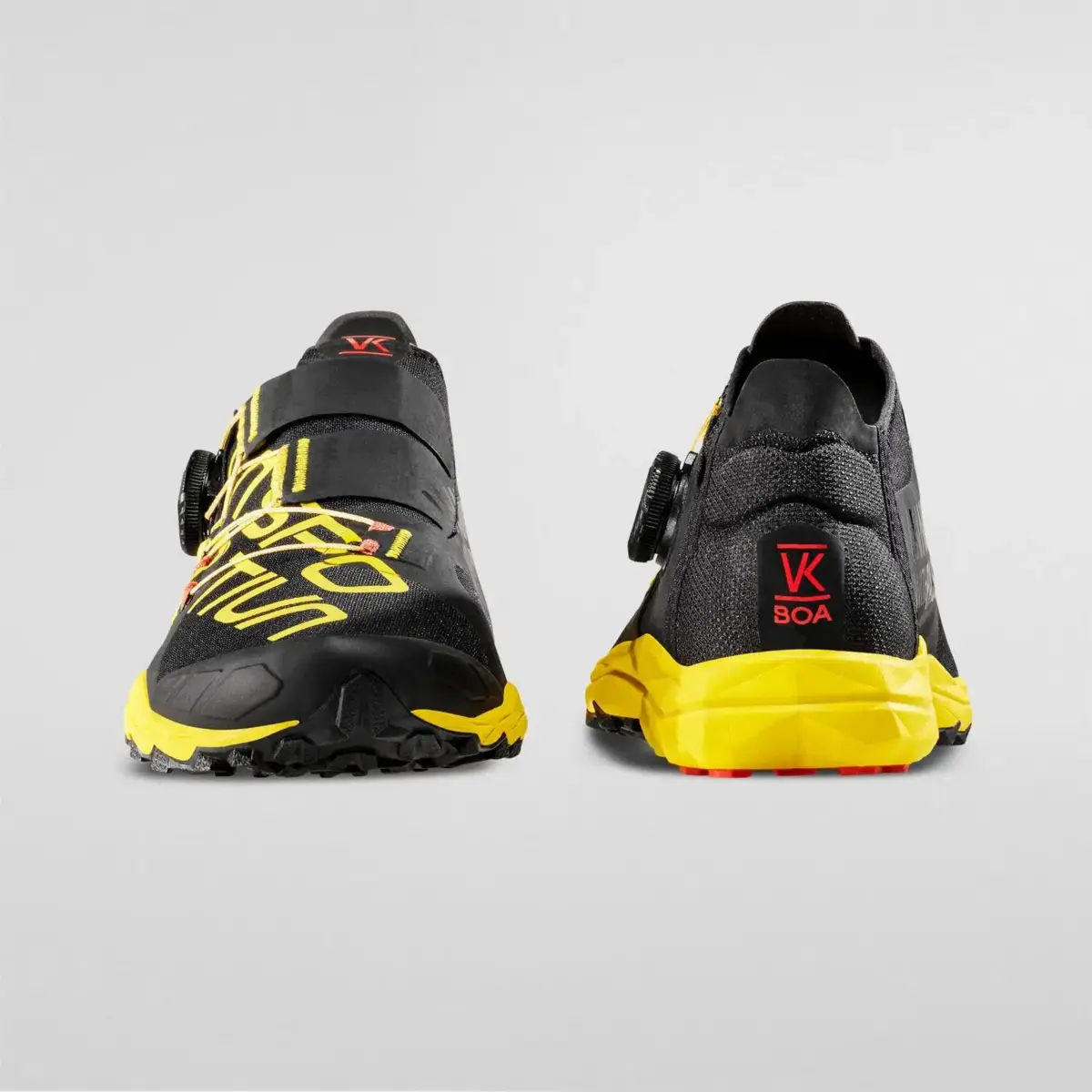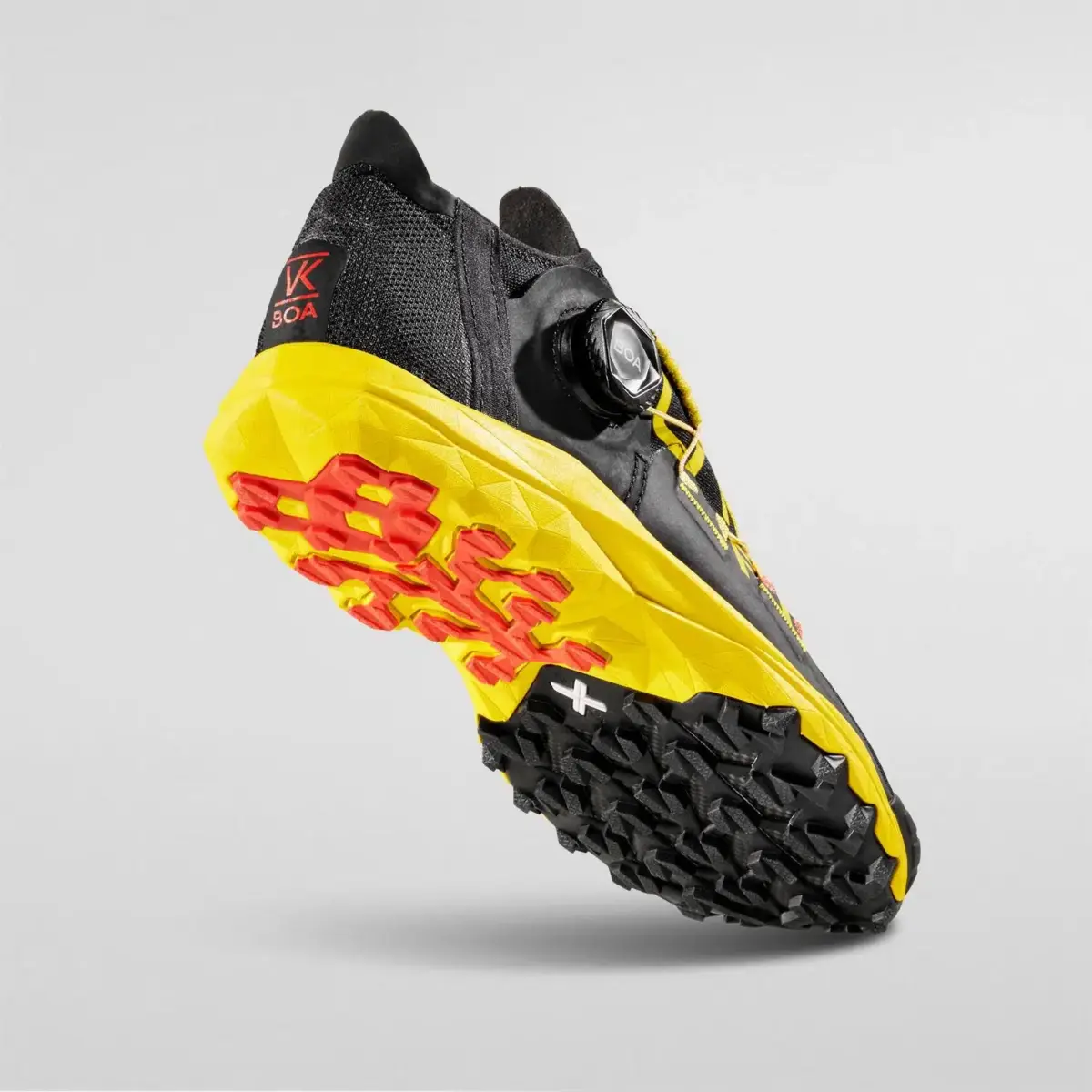 VK BOA is the trail running shoe designed for Vertical Kilometer races and developed with record-man sprinters of the discipline and enriched by the BOA™ Fit rapid closure system. Weight and volume are reduced to a minimum for maximum uphill performance. Every detail has been designed to reduce weight to a minimum. Quick, fast and intuitive BOA™ Fit lacing system: allows for perfect closure and tight fit; the closure flaps integrate the BOA™ Fit system and wrap around the foot perfectly. The Sock-Like uppers are made from bi-elastic mesh to guarantee freedom of movement. The 3D Heel provides maximum comfort and heel support. The TPU toe cap is lightweight and protects against knocks. The super lightweight FriXion White compound is a concentration of technology with tread only where necessary. VK BOA: go vertical!