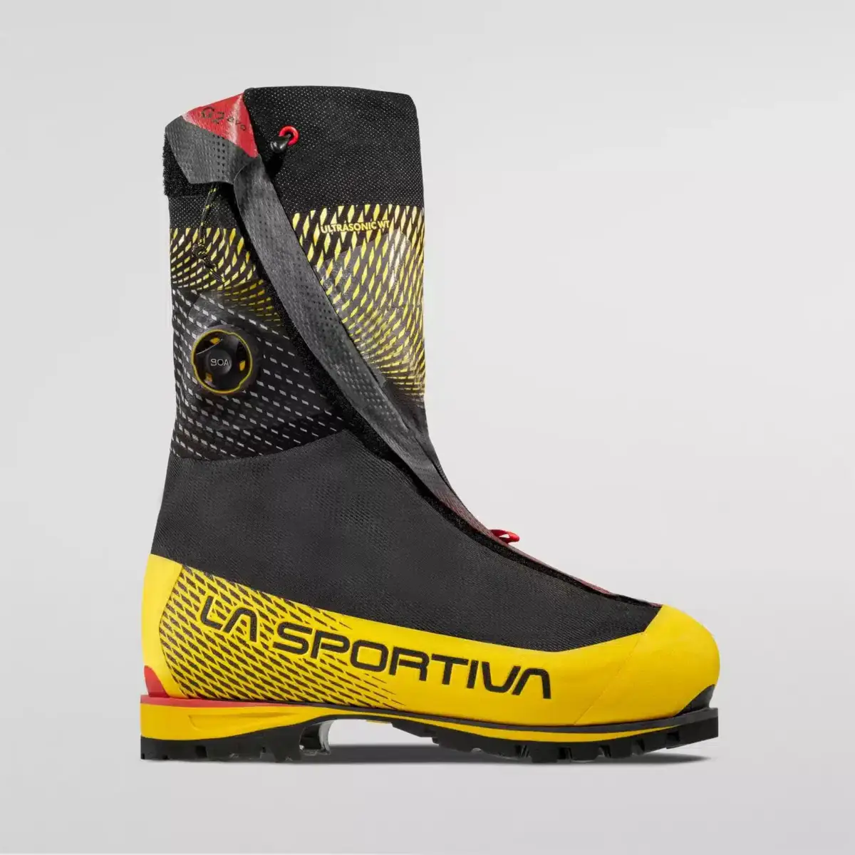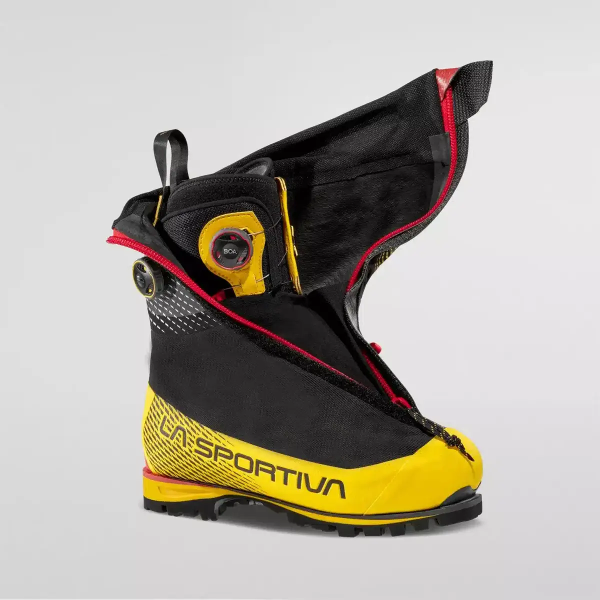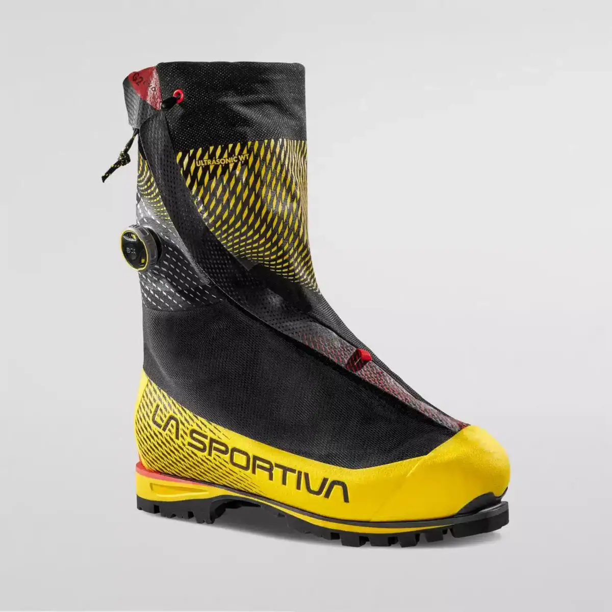 G2 Evo is the ultra thermal double boot for extreme mountaineering and prolonged use at low temperatures. It provides maximum water repellency thanks to the internal thermo-taping and the innovative UltraSonic Welding technology which allows the materials to be joined together without the need for stitiching, the external anti-drag materials and to the internal insulating package of the shell. Resistance to abrasion is guaranteed by the use of Cordura®. The bootie is made using quick-drying materials to allow prolonged use in the mountains. Volumes and weight are extremely contained thanks to the Honeycomb Tech midsole in carbon fiber and to the compact, high-performance construction in traditional La Sportiva style. The inner shell adopts the BOA® Fit System quick-closing system in a double configuration that guarantees a fast, easy and precise fit and differentiated shell tension between the upper and lower part. The BOA® Fit System placed outside the gaiter allows the closure to be adjusted without having to open the zipper of the external gaiter, ensuring the maintenance of the internal temperature and the possibility of acting on the closure system without removing gloves.