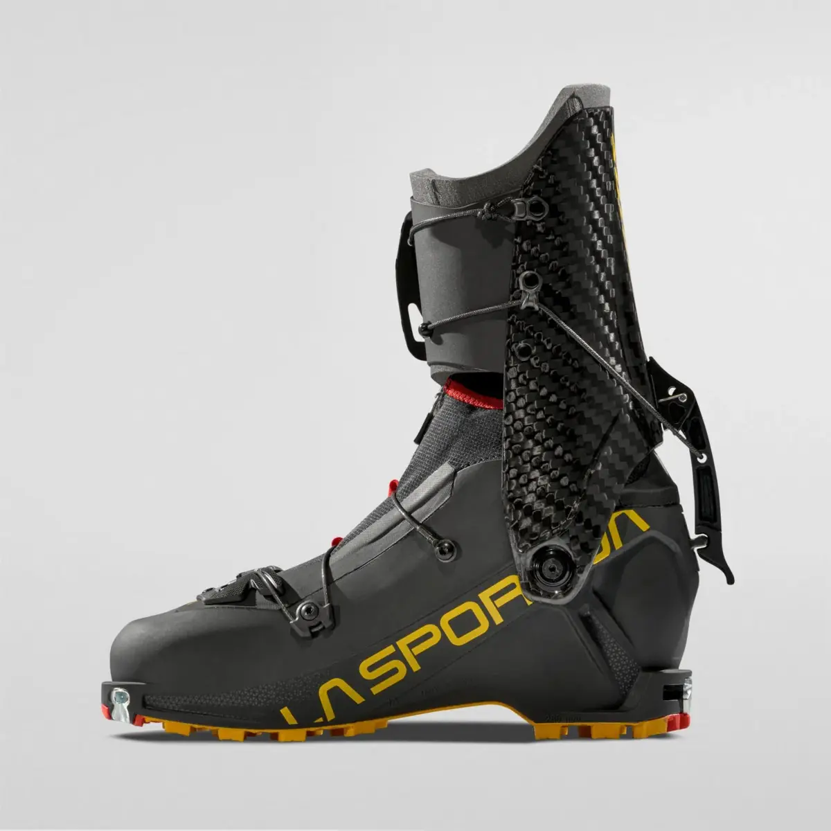 Stratos Hybrid is the boot designed for both advanced skiers and promising young ski mountaineers.It really does combine the best of both worlds: the Grilamid Bio Based LF Carbon™ composite material shell and the fullcarbon leg based on the Stratos VI, handcrafted in Ziano di Fiemme. The ski-walk mechanism and upper closure system are borrowed directly from the top of the range Stratos VI, set-up changes are quicker and easier than ever. The FriXion Wave Race™ sole and the front and back construction comply with ISMF regulations.Finally, it features an integrated gaiter to stop snow coming in, ensuring protection from training to the major mountain routes.In summary? Excellent fit, superb reliability and outstanding performance all packed into less than 730g: once again, the lightest in its class!