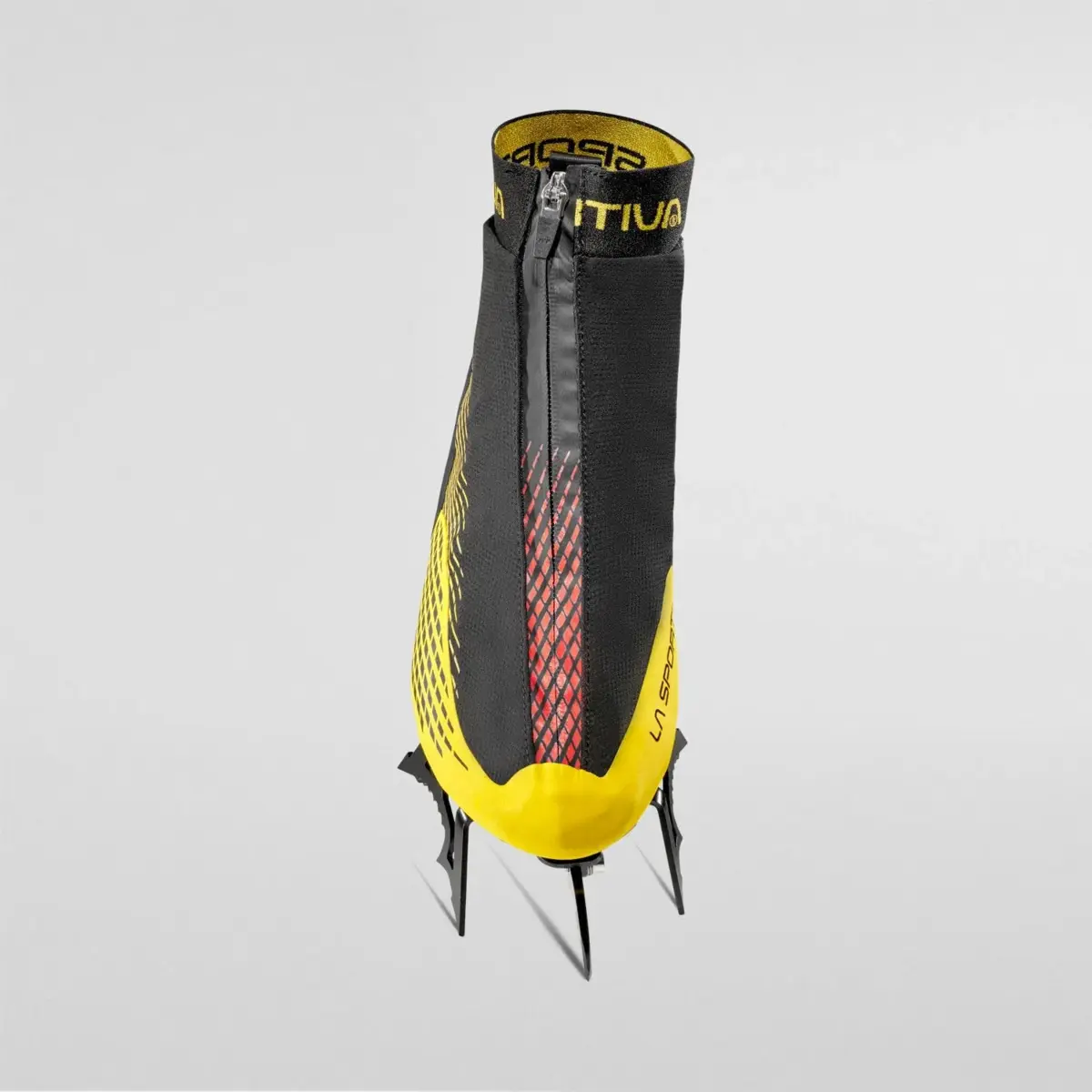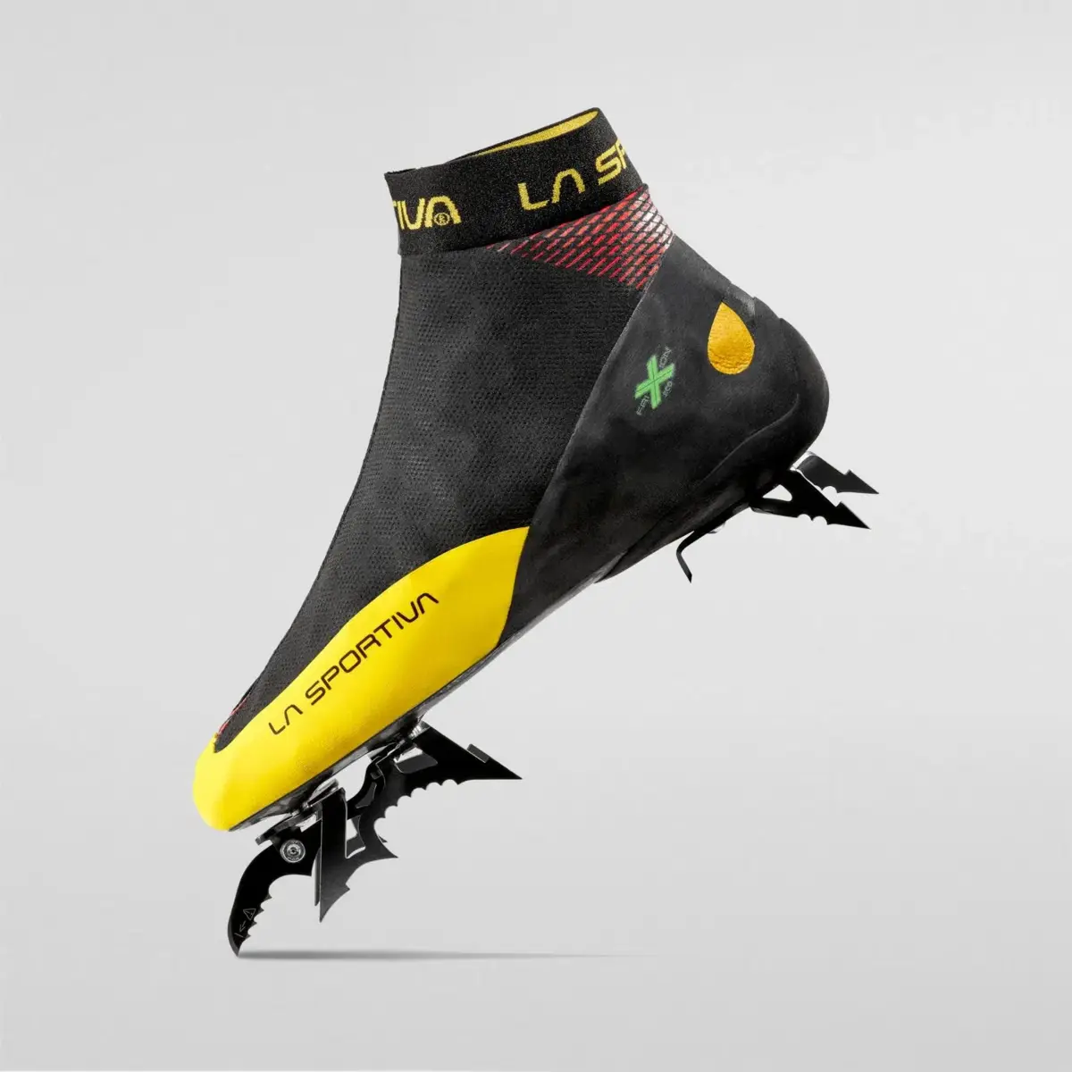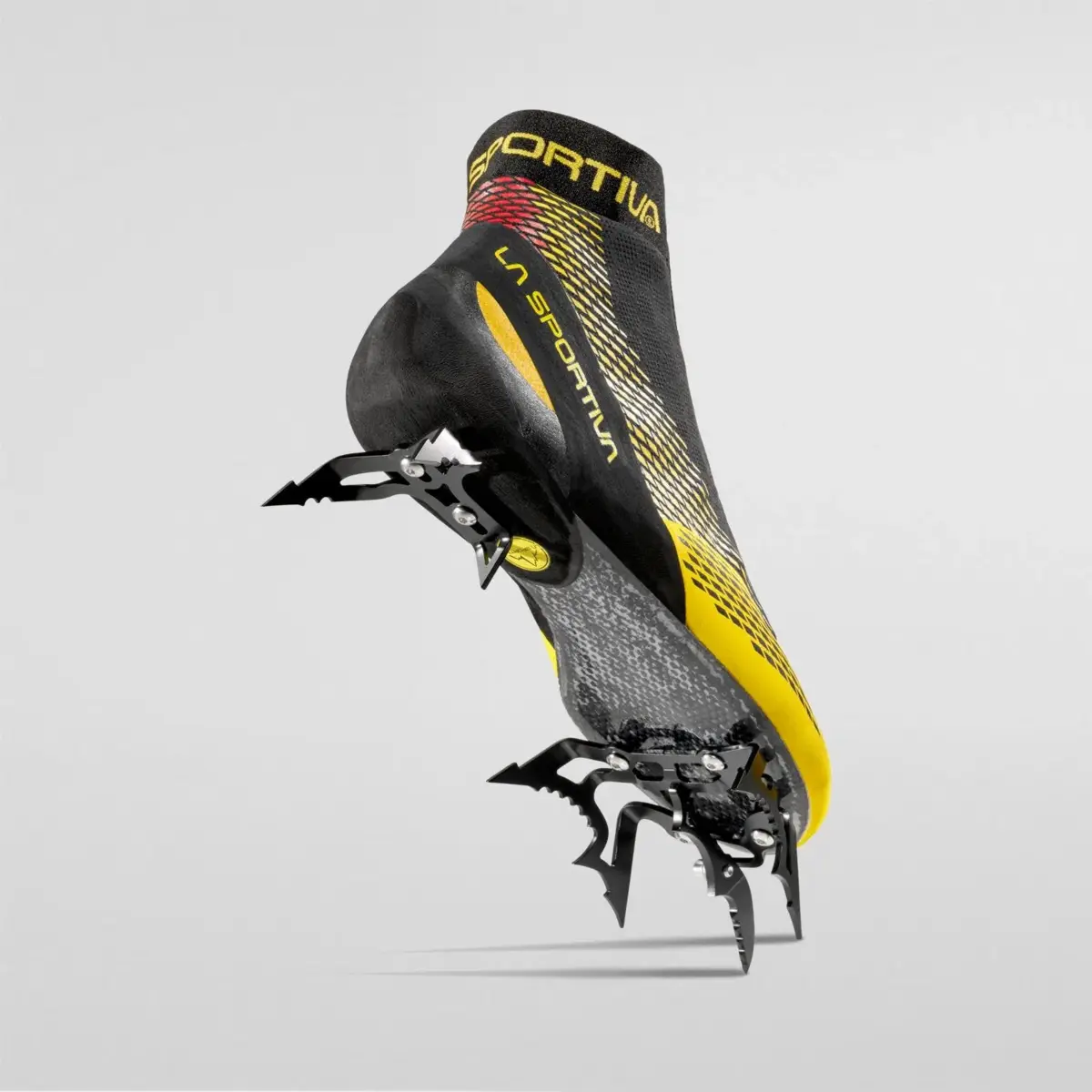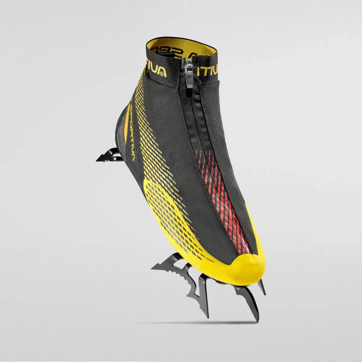 Mega Ice Evo is a technical shoe designed for ice climbing, extreme mixed terrains and dry tooling. It’s a ready-to-use product: the pre-mounted CAMP® Dry crampon is ideal for competitions and the perfect combination for lightweight, precision footwear. Its Quick Lacing System makes it really quick to fasten, offering fast, precise adjustment even when wearing gloves. The sole is in carbon with threaded inserts to fit the CAMP® DRY crampon. This system makes it simple to swap crampons whenever the need arises. The zip pull, ridge and heel are all made from 100% recycled rubber scraps from La Sportiva climbing shoes, maximising our waste reduction in the production process.