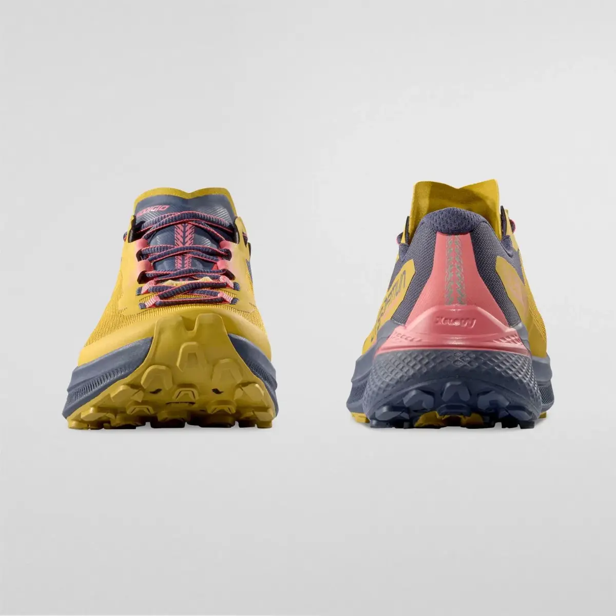 A revolutionary product dedicated to the Ultra Trail world of La Sportiva.New XFlow™ foam, designed and developed to ensure maximum cushioning and energy return – mile after mile.Every detail has been designed to meet the needs of the most demanding runners: the large toe box and breathable upper provide comfort even after several hours of running, while the construction Wrapping System and the perfect ergonomics of the heel ensure stability and protection.