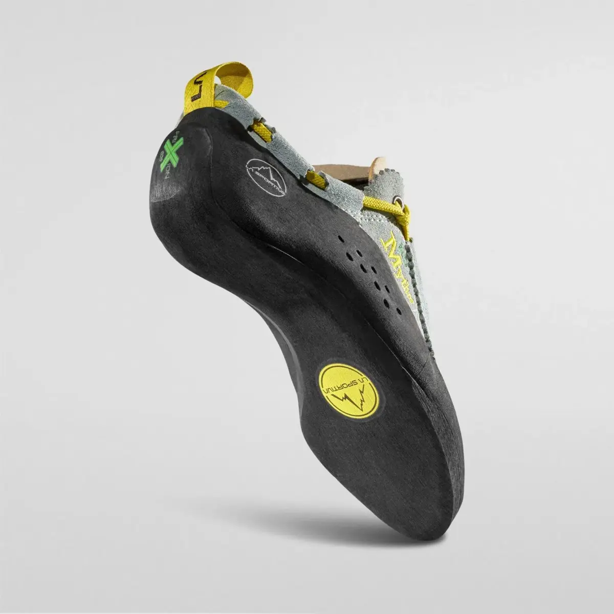 The Mythos is a key part of the history of sport climbing since 1991. This re-edition made with recycled rubber compound coming from our product scraps. The revolutionary patented lacing system allows you to wear the Mythos Eco Woman quickly and easily, ensuring an even distribution of tension across the entire foot. This innovative closure provides optimal comfort, perfectly adapting to every foot shape and offering consistent support during long climbing sessions.