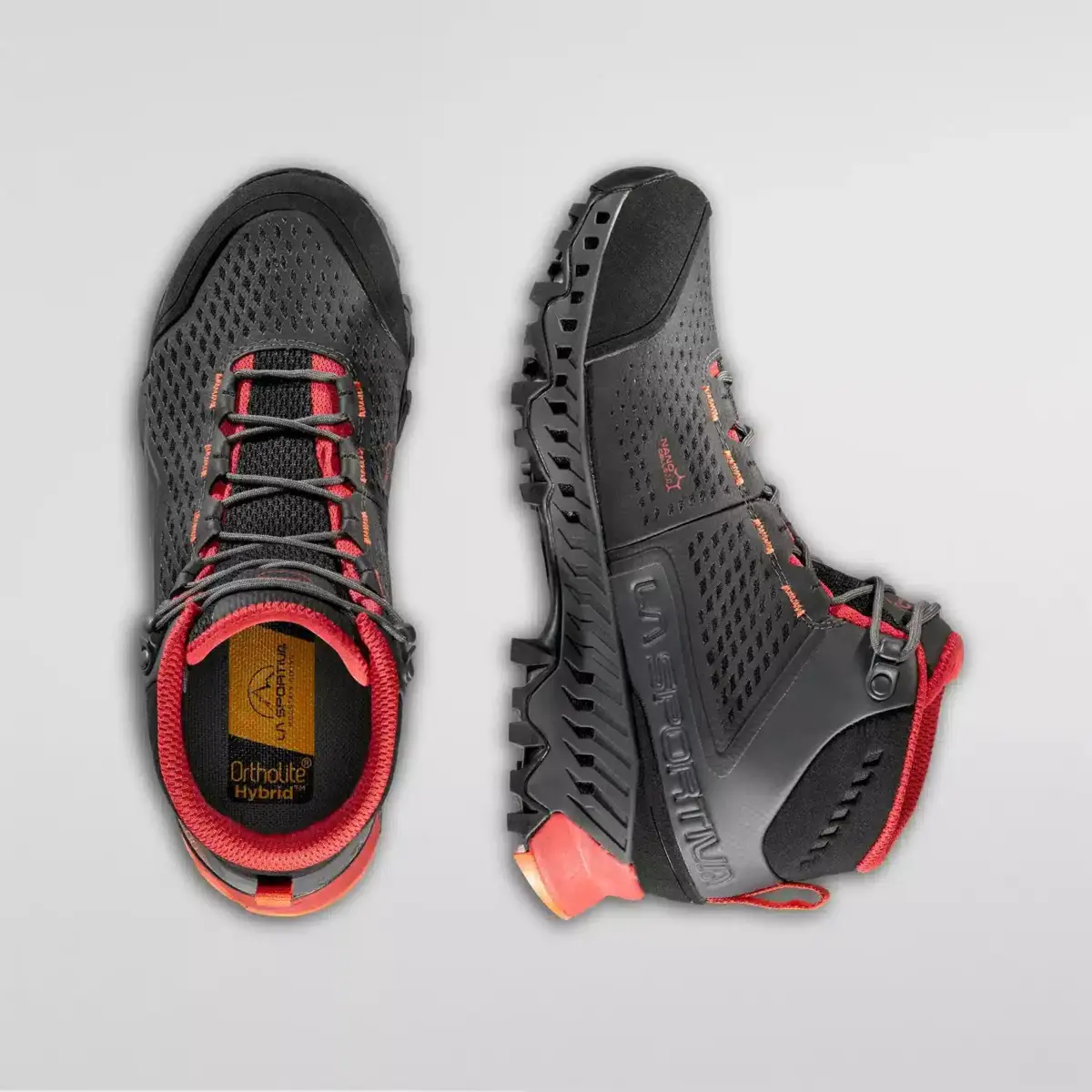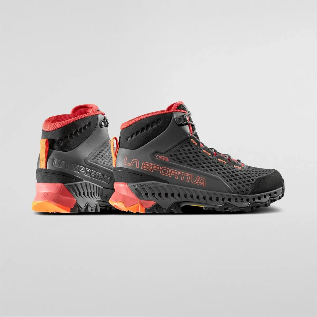 Stream is a mid cut, fast hiking boot for anew generation of hiking. It adopts solutions that are part of La Sportiva’s mountain DNA combining the technologies and concepts derived from the Mountain Running and Mountain categories to create a versatile, waterproof and 360° breathable shoe thanks to the new GORE-TEX SURROUND® technology: the exclusive membrane that guarantees 360° breathability thanks to the wider aeration surface that comprises the uppers, footbed and EVA midsole with side ventilation outlets in TPU. The aeration channels visible along the profile of the midsole, are protected by an extremely resistant Nylon mono net, to prevent stones and other impurities from entering the ventilation outlets. The mid cut uppers use the Nano-Cells 2.0™ structure ; super breathable cells that work in synergy with the GORE-TEX SURROUND® membrane to provide unprecedented levels of breathability. The lower part of the boot incorporates the Stability control System™, a stabilizing control system that integrates the ventilation outlets with the GORE-TEX SURROUND® technology. The Vibram XS Trek outsole provides excellent grip on hard, soft and muddy terrain. All round breathability and comfort is guaranteed.