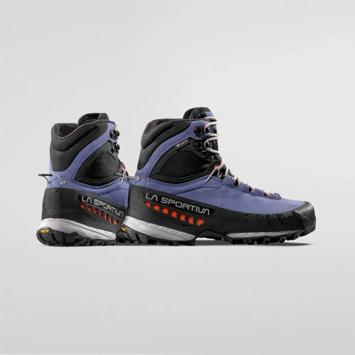 Mid-cut, approach shoe designed for hikers and backpackers with heavy loads. Secure and protective, TX5 GTX is waterproof and breathable thanks to the use of the GORE-TEX Extended Comfort membrane and extremely comfortable thanks to the soft Nubuck leather uppers enriched with the all-round protective rubber, abrasion resistant rand and toe cap. The high cuff protects against stones and mud while the 3D Flex System allows for maximum precision on holds and freedom of movement in complete safety, while the underfoot stabilizer makes the shoe ideal for extended use.The outsole uses Vibram MegaGrip compound with differentiated lugs and Impact Brake System for enhanced shock absorption and hold on all types of terrain. This shoe is the ideal choice for both hikers and general mountain enthusiasts.