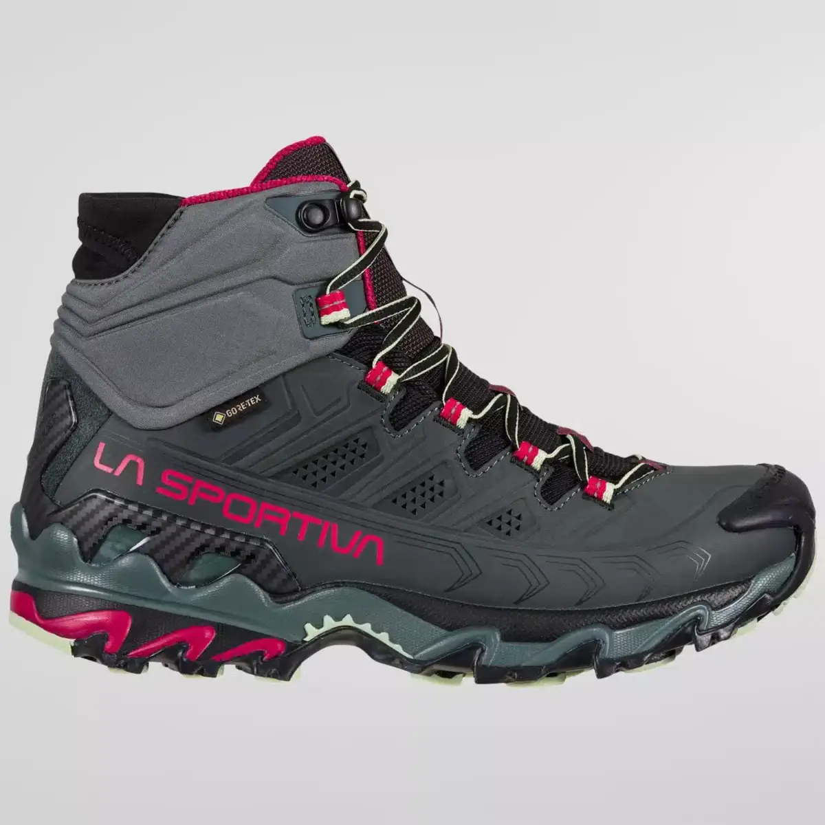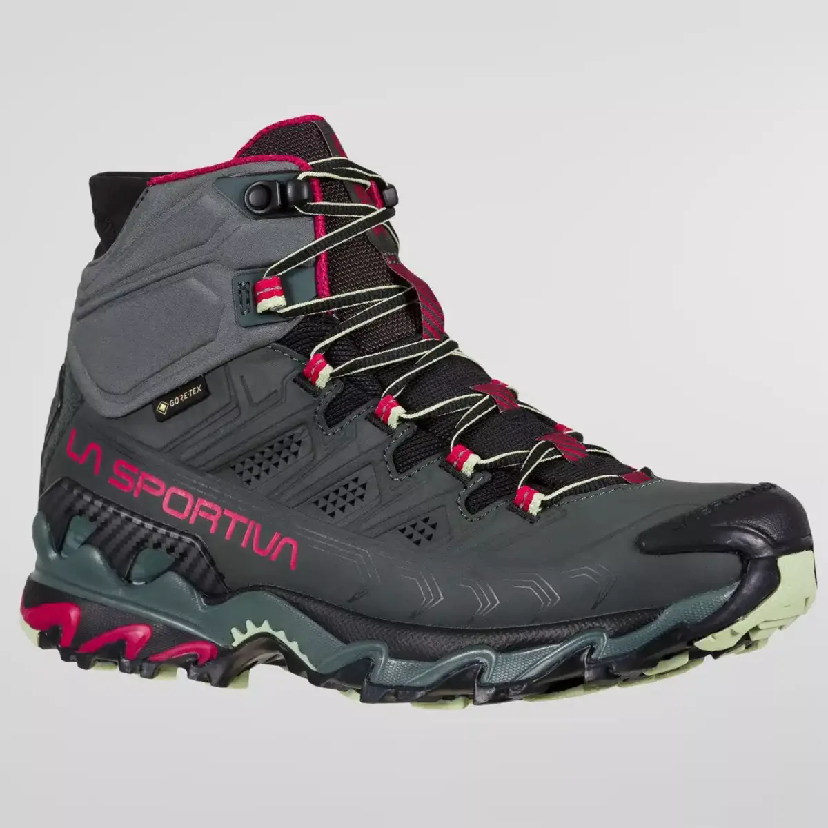 Ultra Raptor II Mid Leather GTX is the leather upper version of the Ultra Raptor II Mid model, it is ideal for fast hiking and excursions with light loads. The Nubuck leather uppers are reinforced with compression lines that guarantee foot wrapping and high stability. Abrasion resistant and breathable, it is perfect for hiking use. Waterproof and breathable thanks to the Gore-Tex® Extended Comfort membrane. The soft “Comfort Collar” protects the ankle from the entry of stones or mud and integrates the easy-fit spoiler for maximum ease of fit. The rear stabilizing heel allows perfect control on the crossbeams. Ultra Raptor II Mid Leather GTX is also available in a wide-fit comfort version dedicated to hikers with wide feet. The result is a shoe that can be worn for many consecutive hours and is suitable for off-road use on any type of terrain. Raptorize yourself, again.