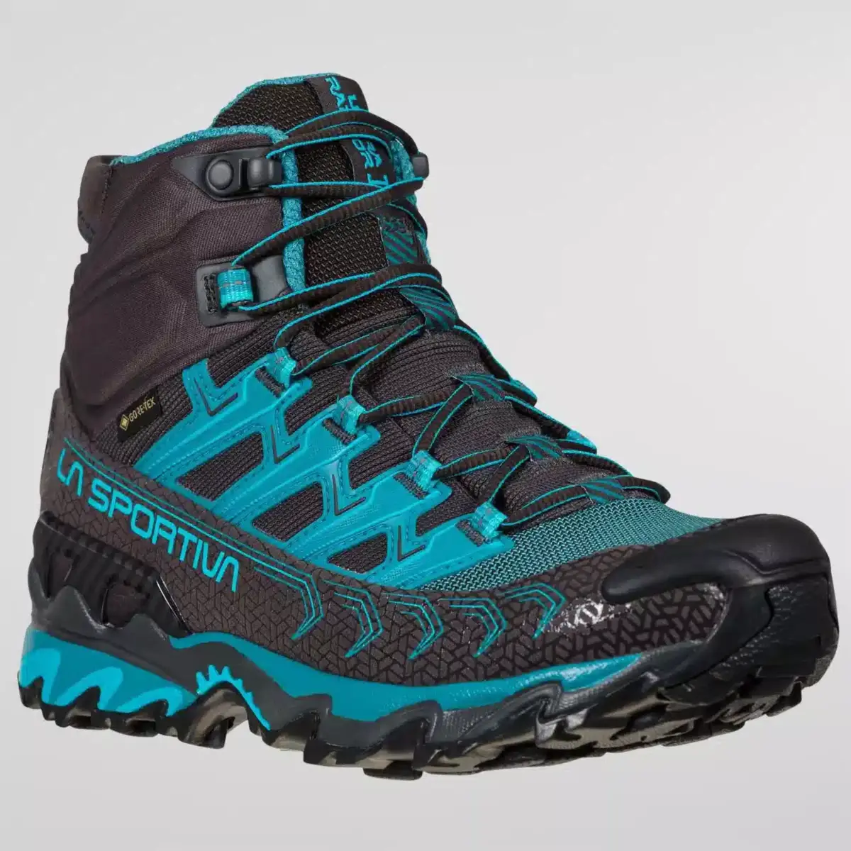 Ultra Raptor Mid II GTX is the mid-cut version of the Ultra Raptor Mountain Running icon, ideal for fast hiking and excursions with light loads. Waterproof and breathable thanks to the Gore-Tex® Extended Comfort membrane. The soft Comfort Collar protects the ankle from the entry of stones or mud and integrates the easy-fit spoiler for maximum ease of fit. The upper is in abrasion-resistant, breathable mesh fabric, perfect for use in all conditions. The rear stabilizing heel allows perfect control over the traverses. Perfect volume adjustment and foot hold thanks to the dedicated lacing elements: the eye-stay webbings are sewn on the inside of the upper and reinforced on the outside with a high frequency TPU skeleton, allowing the lace pull-force to be distributed equally over all areas of the upper. Ultra Raptor Mid II GTX is also available in a wide-fit comfort version to accommodate different foot-volumes. The result is an mid cut hiking shoe that can be worn for many consecutive hours and suitable for off-road use on any type of terrain. Raptorize yourself, again.