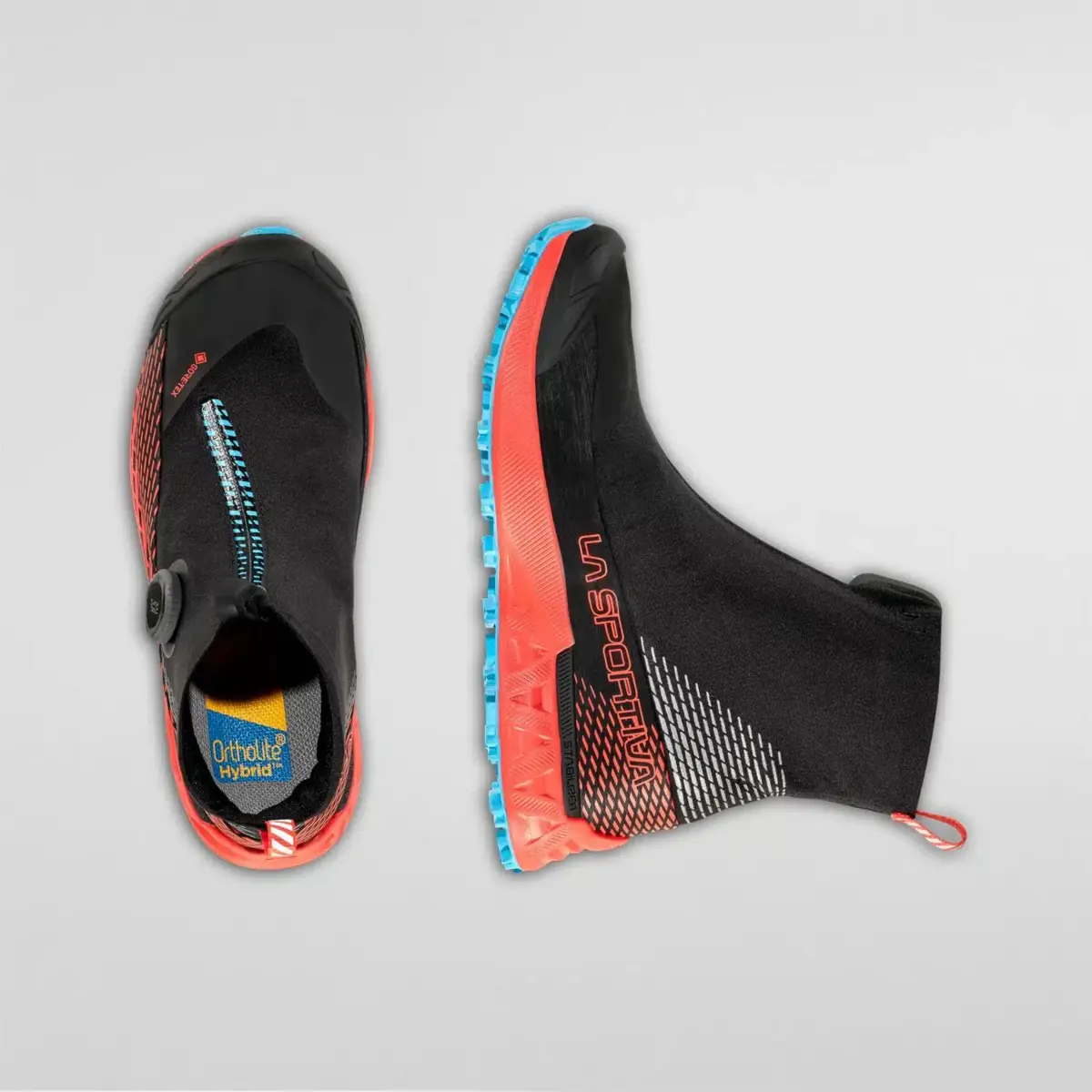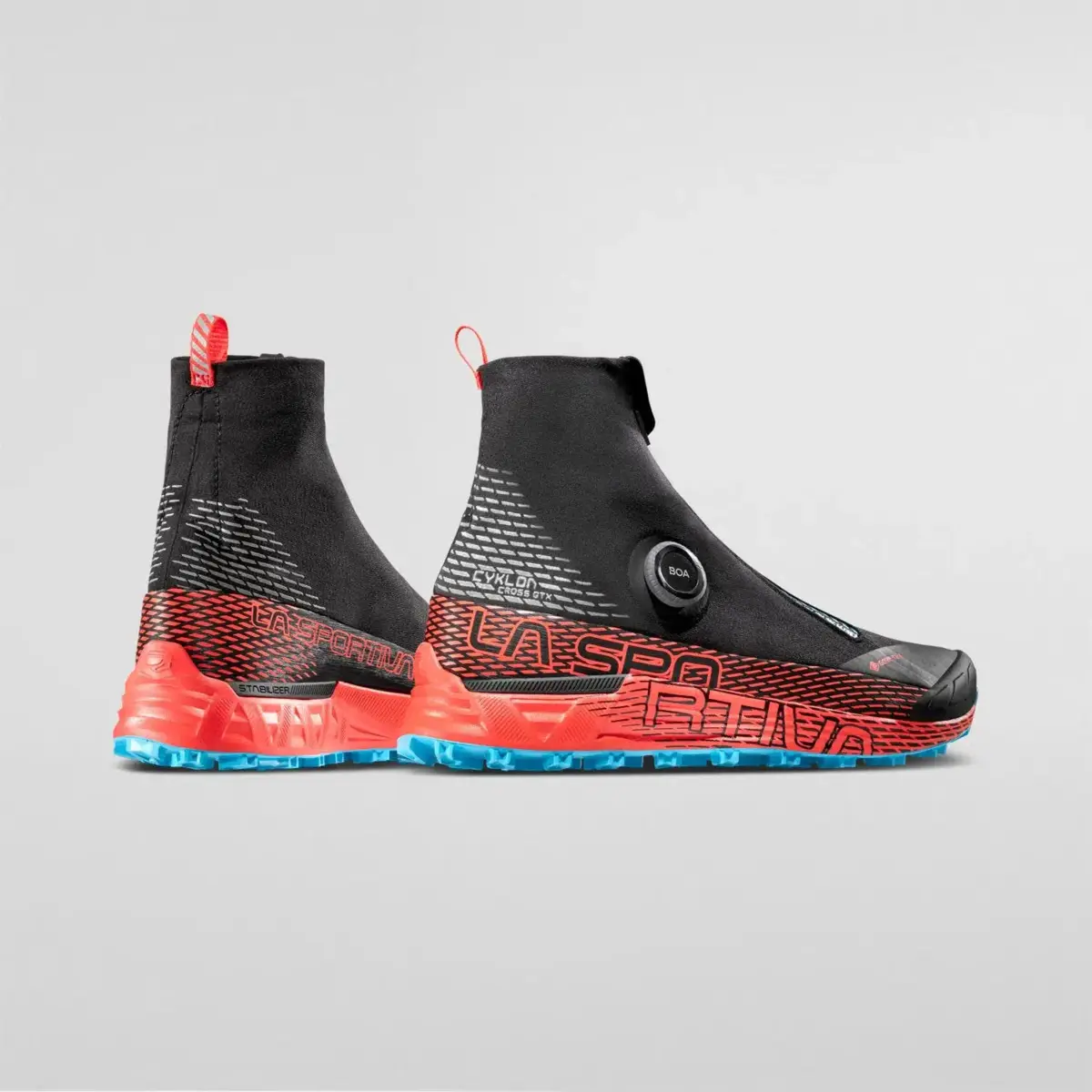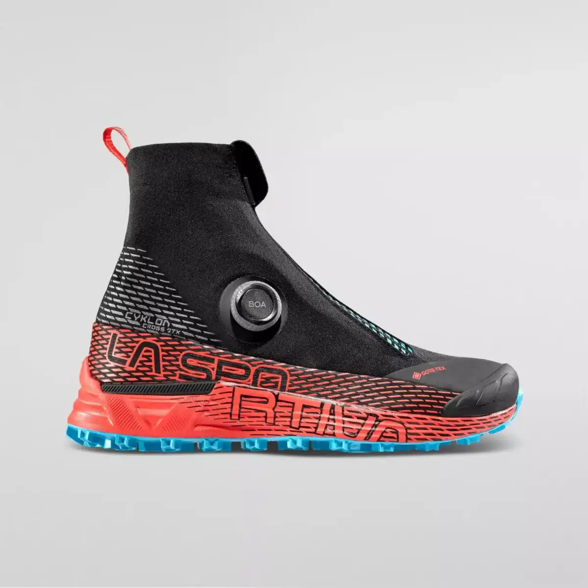 Cyklon Cross GTX® is the technical Mountain Running® shoe with integrated water-repellent gaiter and BOA® Fit System lacing. Designed for off-road training and competitions in the winter months and suitable for use with snowshoes. The GORE-TEX® membrane is waterproof and breathable, working in synergy with the water-repellent gaiter to prevent mud and snow getting in. The overall fit comfort is achieved through the “Easy-in” system that makes it quick and easy to put the shoes on. The BOA® Fit System offers greater precision and speed when adjusting the fit of the shoe. The sole is made from FriXion® White, a mix that offers excellent grip and is designed to be used with AT Grip spikes to enhance grip on snowy and icy terrain. A must-have for anyone who loves to run and compete, even in the winter months. Cyklon Cross GTX®: for winter.