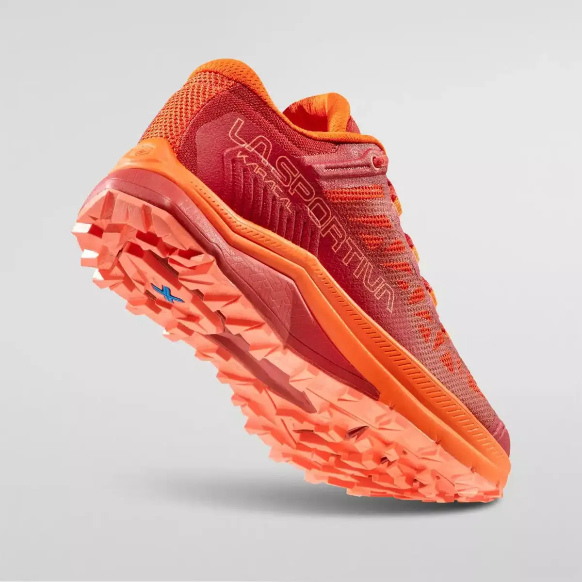 Karacal is the training shoe dedicated to trail running uses, Karacal is designed for prolonged off-road training on medium and long distances and is perfect for post-race recovery thanks to its exceptional comfort fit and high breathability. The compact “performance-like” collar and traditionally constructed tongue guarantee maximum comfort. The 3D Mesh single-layer seamless upper allows the containment of volumes and high breathability, the rear microfiber reinforcements support the overall stability of the shoe. Extremely lightweight and flexible thanks to the weight reduction of all the materials used and the lightweight and durable dual density EVA midsole. The thermo-form toe-cap contributes to the overall lightweight features and provides excellent protection from impacts against rocks and roots. Outsole in durable FriXion blue compound with Impact Brake System lugs in varying thicknesses, enhancing traction & braking efficiency and optimizing weight. Karacal: if you train, you trail.
