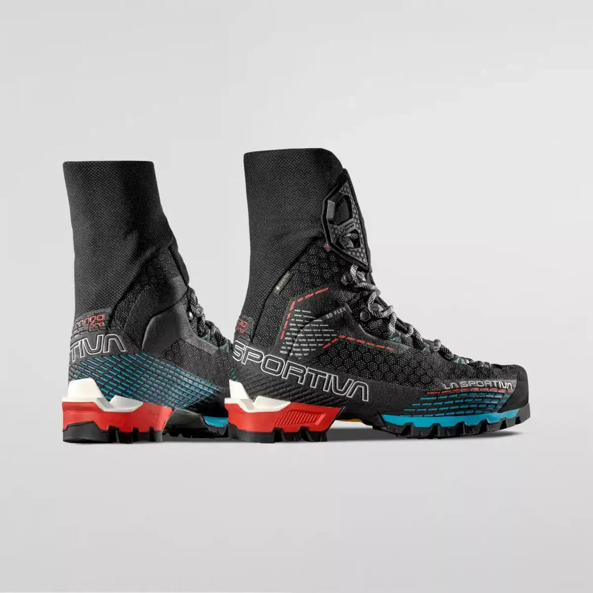 The Trango Pro Woman Gore-Tex boot is developed for the most demanding users who need safety and performance on technical and traditional mountaineering routes in summer conditions.Made with next generation concepts and materials, the Trango Pro Gore-Tex has been carefully designed down to the smallest detail to ensure maximum technicality, precision climbing and an extremely low weight, to meet the needs of mountain professionals and more advanced users. The new Trango-Ergo last, designed to better adapt to and fit different foot shapes, allows mountaineers to experience maximum precision and comfort.The La Sportiva Vortex gaiter with quick closure prevents the entry of debris and snow and protects the upper lacing of the boot.The Vibram® Cube Evo sole made with SpringLug Tech technology to guarantee cushioning from impact with the ground while remaining ultra lightweight, was designed by La Sportiva experts to maximise climbing performance through the large Climbing Zone at the toe and to enhance its traction and braking thanks to the use of the patented Impact Brake System™ technology.The waterproof GORE-TEX Performance Comfort lining ensures maximum protection from the weather.
